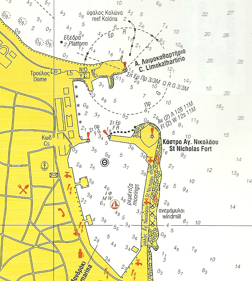 Die Marina Mandraki liegt auf Rhodos, der größten Insel des griechischen Dodekanes. Sie befindet sich mitten in der berühmten Rhodos-Stadt, an der Nordspitze der Insel, und ist im Prinzip der alte Hafen. Es ist keine typische Marina, sondern eher ein Stadthafen, bietet aber Strom und Wasser, Lebensmittelläden sind in unmittelbarer Nähe. Die Altstadt ist in wenigen Minuten zu Fuß zu erreichen.